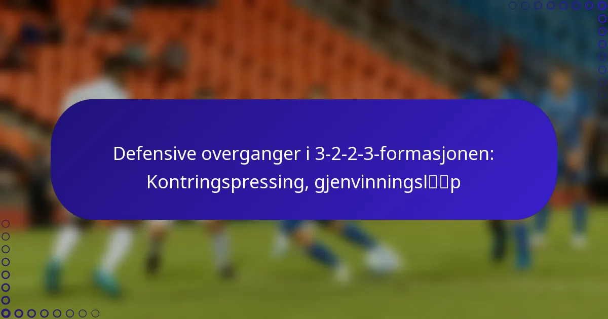 Defensive overganger i 3-2-2-3-formasjonen er avgjørende for å skifte fra en offensiv til en defensiv holdning når ballbesittelsen tapes. Nøkkelstrategier som motpressing og gjenopprettingsløp spiller en viktig rolle i å…